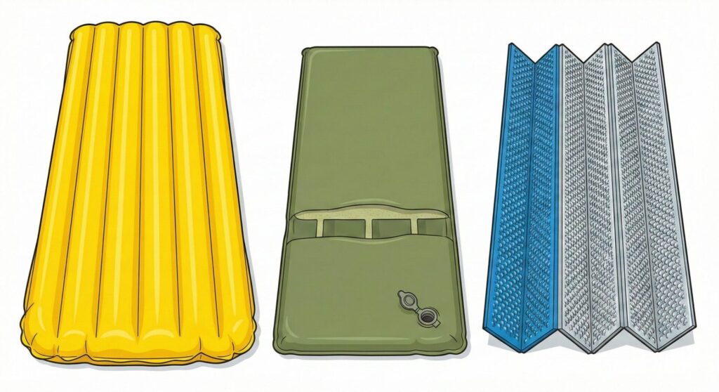 冬用マットは大きく分けて3種類あります。自分のスタイルに合うものを選びましょう。